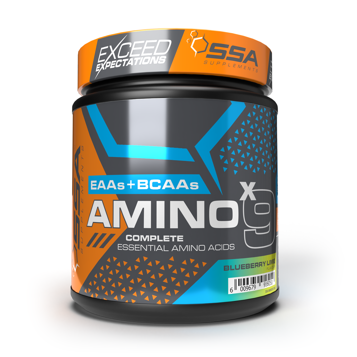 SSA Supplements Amino x9 contains all 9 essential amino acids (EAA’s) at the precise dosages required for athletic performance which can be used PRE, INTRA or POST workout.